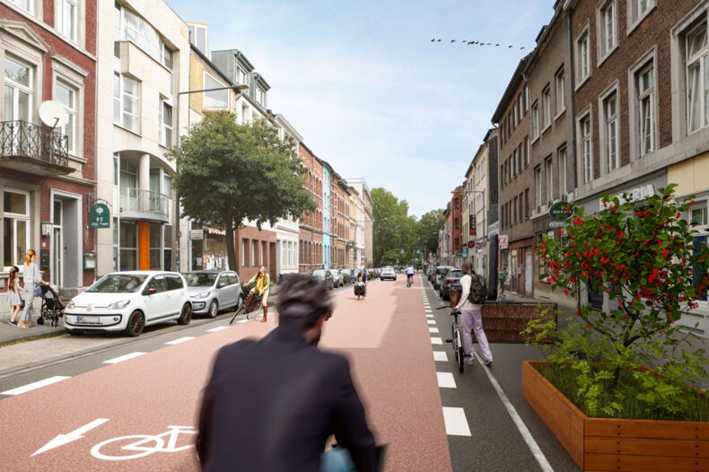 Dabei ist die Stadt Aachen bereits eine Stadt der kurzen Wege. Dreißig Prozent der Wege in Aachen werden zu Fuß zurückgelegt. Mit besonders einladenden Premiumfußwegen sollen aber auch die angrenzenden Stadtviertel und umliegenden Grünbereiche mit der Innenstadt verbunden werden. Die Nutzung des Fahrrades hat in den vergangenen Jahren spürbar zugenommen. Die Radvorrangrouten werden dazu beitragen, dass das Radfahren sicherer und komfortabler wird. Und der Grabenring soll die Rolle des Radverteilerringes um die Altstadt übernehmen. Die Busse werden auf emissionsfreie Antriebe umgestellt und das Busangebot erweitert. In einigen Jahren soll die Regiotram weitere Nachbarstädte direkt mit der Innenstadt und dem Hauptbahnhof verbinden und Aachen damit wieder zu einem Straßenbahn-Angebot zurückkehren, das in den siebziger Jahren zum Bedauern vieler Nutzer*innen eingestellt worden ist.