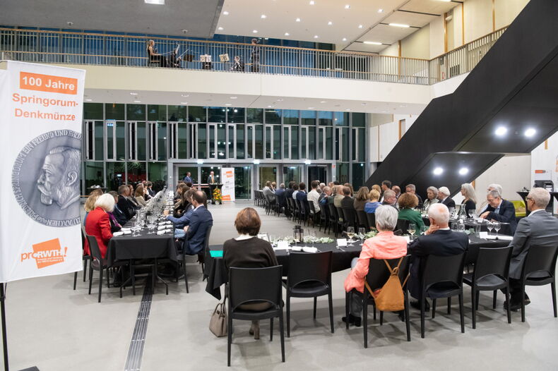Warum dieses Jubiläum so bedeutend ist: Die Springorum-Denkmünze zählt heute zu den begehrtesten Auszeichnungen unter den Absolvent*innen der RWTH. Allein im Jahr 2025 erhielten 356 Graduierte diese Ehrung, weil sie ihre Masterprüfung, ihre Lehramtsprüfung oder ihr Staatsexamen „Mit Auszeichnung“ bestanden hatten, so Rektor Professor Ulrich Rüdiger. Doch die Bedeutung der Springorum-Denkmünze als Anerkennung herausragender Leistungen gehe über Zahlen weit hinaus, erinnerte Professor Bernd Markert, Vorsitzender des Fördervereins, in seiner Begrüßungsrede, denn: „Die Springorum-Denkmünze steht seit einem Jahrhundert für Freundschaft, Förderung und Zusammenarbeit.“
